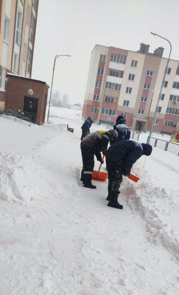 Расчищается от снегопада тротуары, придомовые территории, свои объекты.