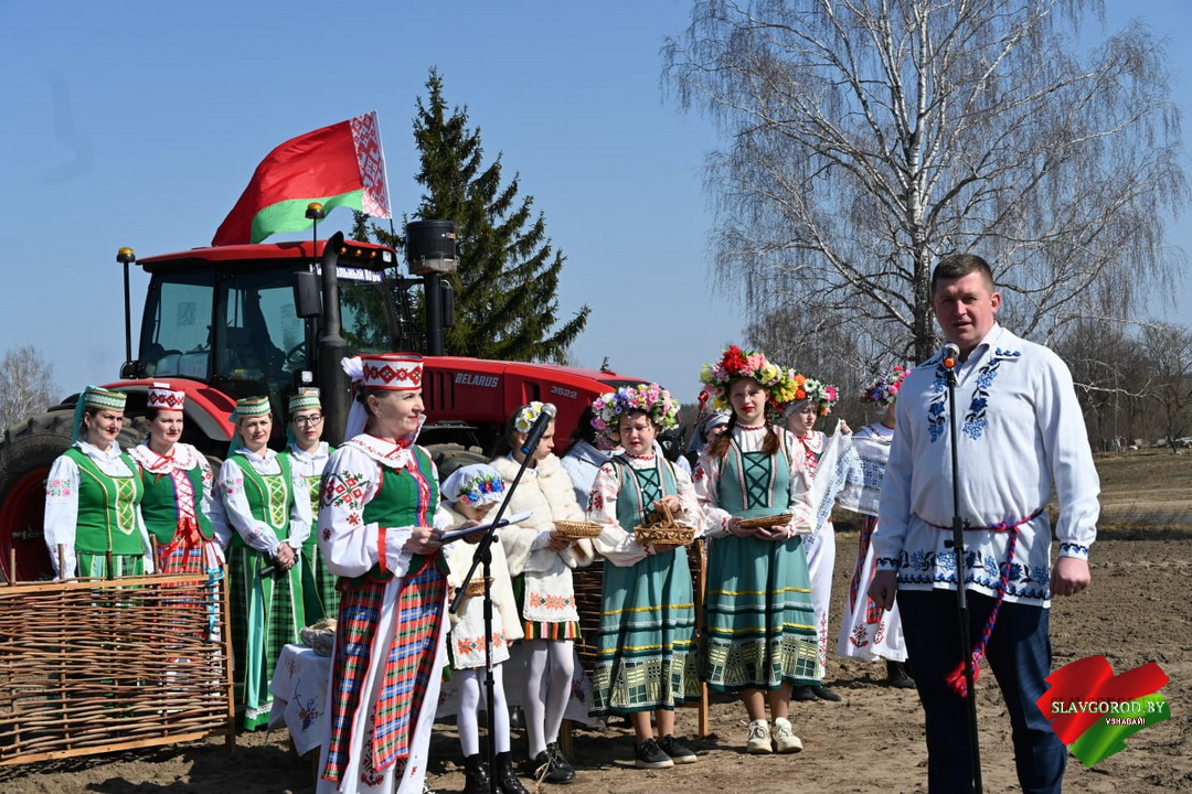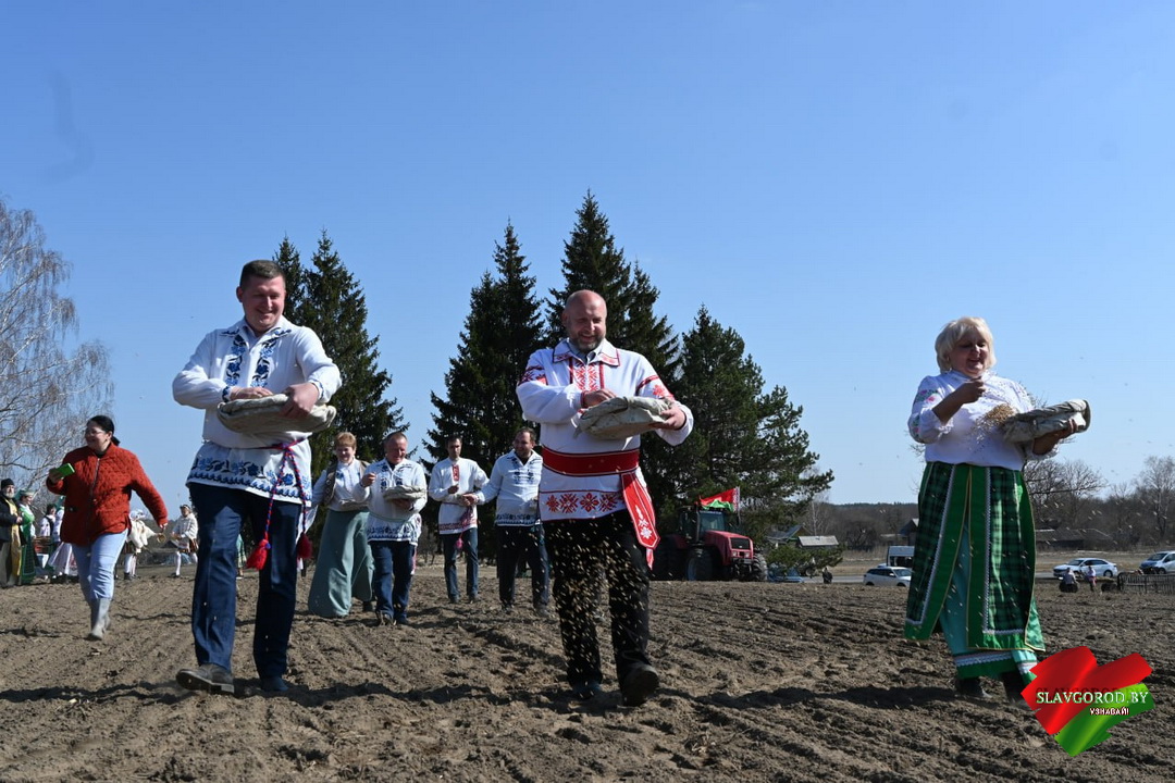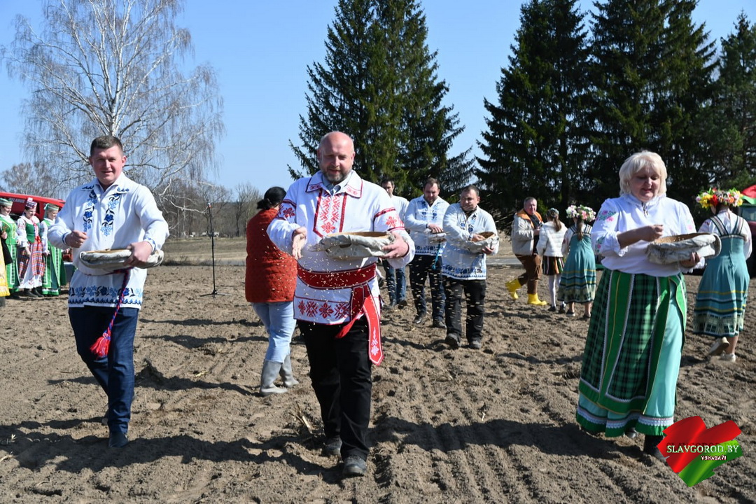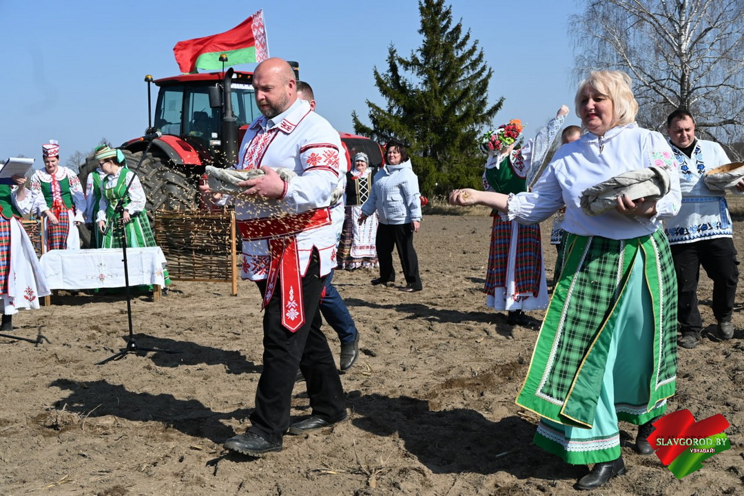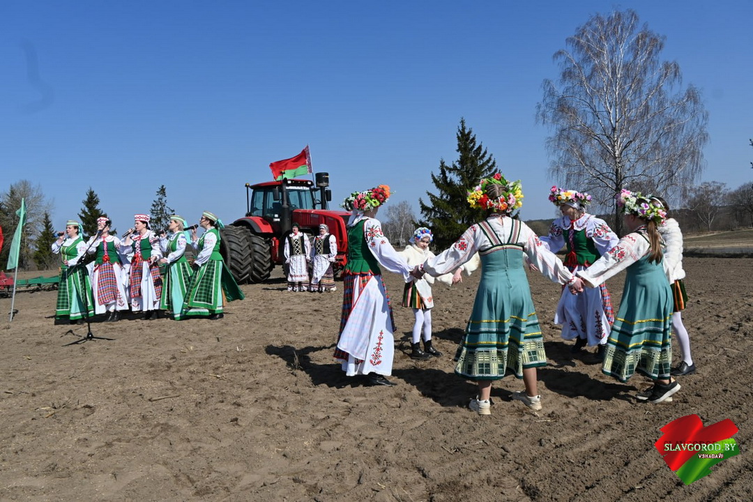 Творческий коллектив централизованной клубной системы Славгородского района звоссоздал атмосферу старинного обряда. В их исполнении звучали песни, которые когда-то помогали земледельцам в поле, и настроили тружеников на добросовестный труд.