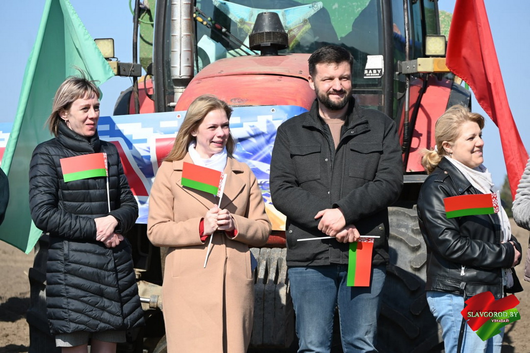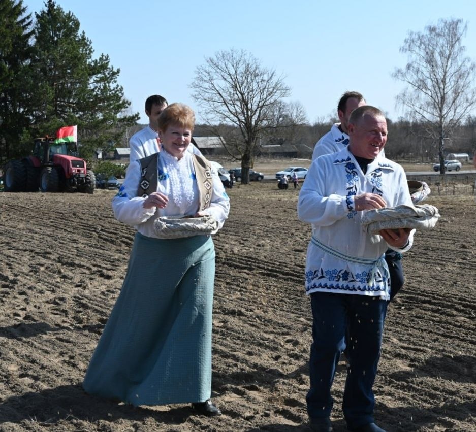Право первыми бросить зерно в прогретую землю доверили Максиму Потапенко, Светлане Езерской и руководителям сельхозорганизаций.