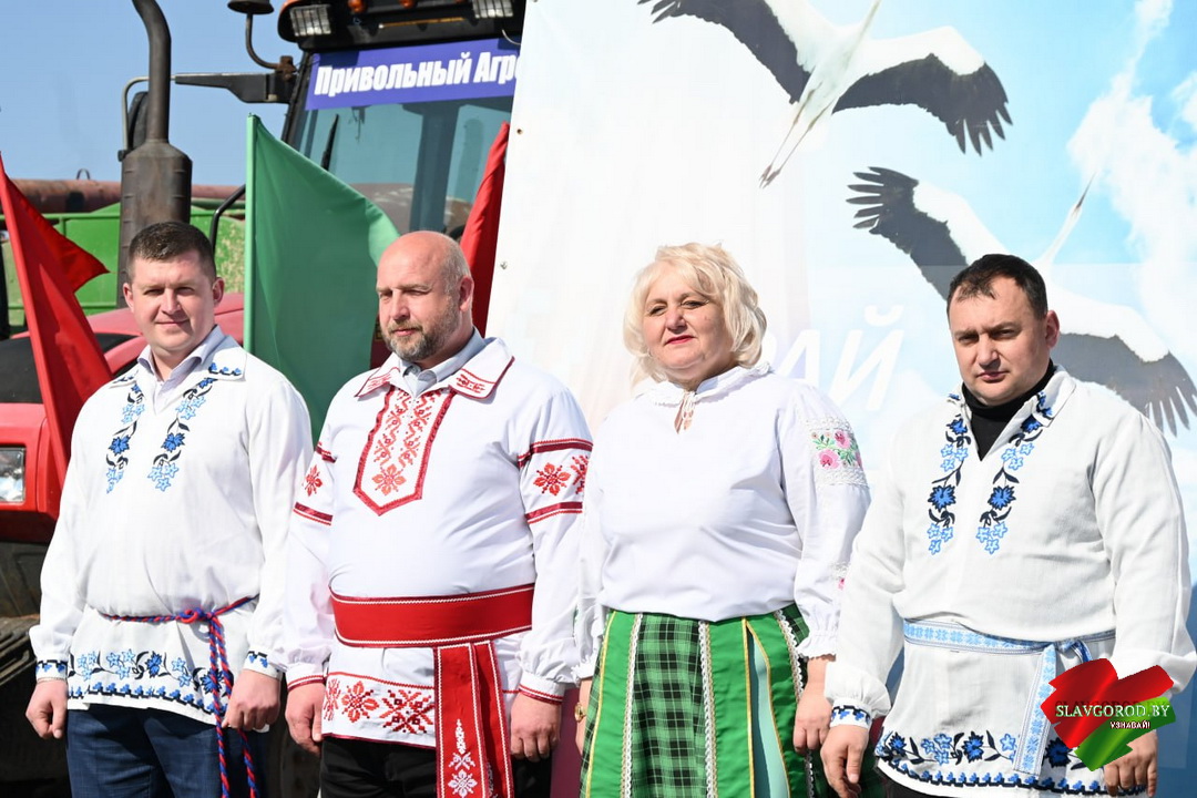 Торжественно выстроилась в ряд мощная энергонасыщенная техника. Рядом с ней — главные герои дня, хлеборобы «Привольного агро». В празднике приняли участие: глава района Максим Потапенко, председатель районного Совета депутатов Светлана Езерская, первый заместитель председателя – начальник управления по сельскому хозяйству и продовольствию райисполкома Андрей Валынцев, руководители сельскохозяйственных организаций района, специалисты управления по сельскому хозяйству и продовольствию райисполкома