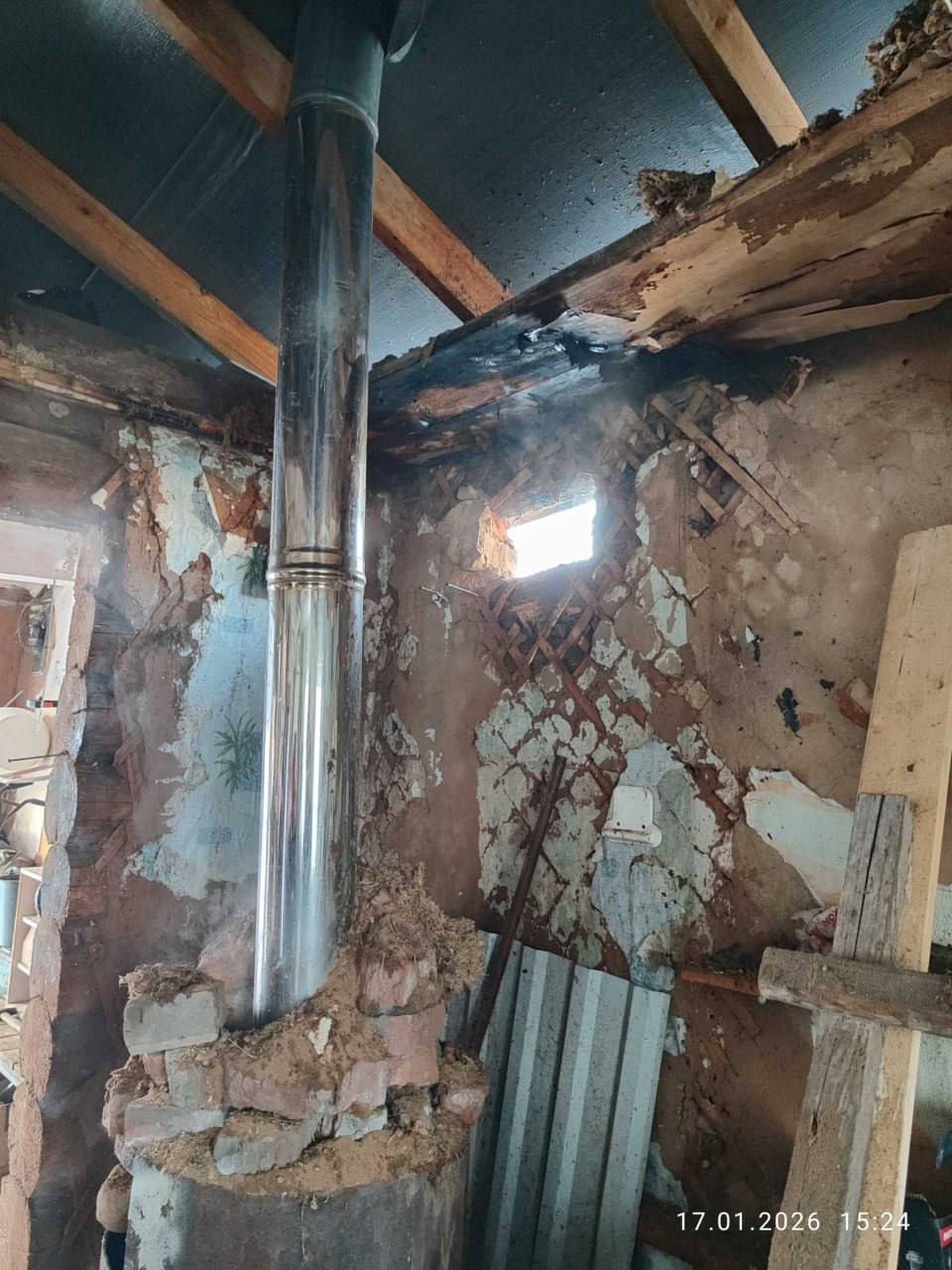 Пожар ликвидирован. В результате пожара повреждено 4 м.кв. потолочного перекрытия в гараже. Причина пожара уточняется. Предполагаемая причина — нарушение правил эксплуатации теплогенерирующих устройств (перекал печи).