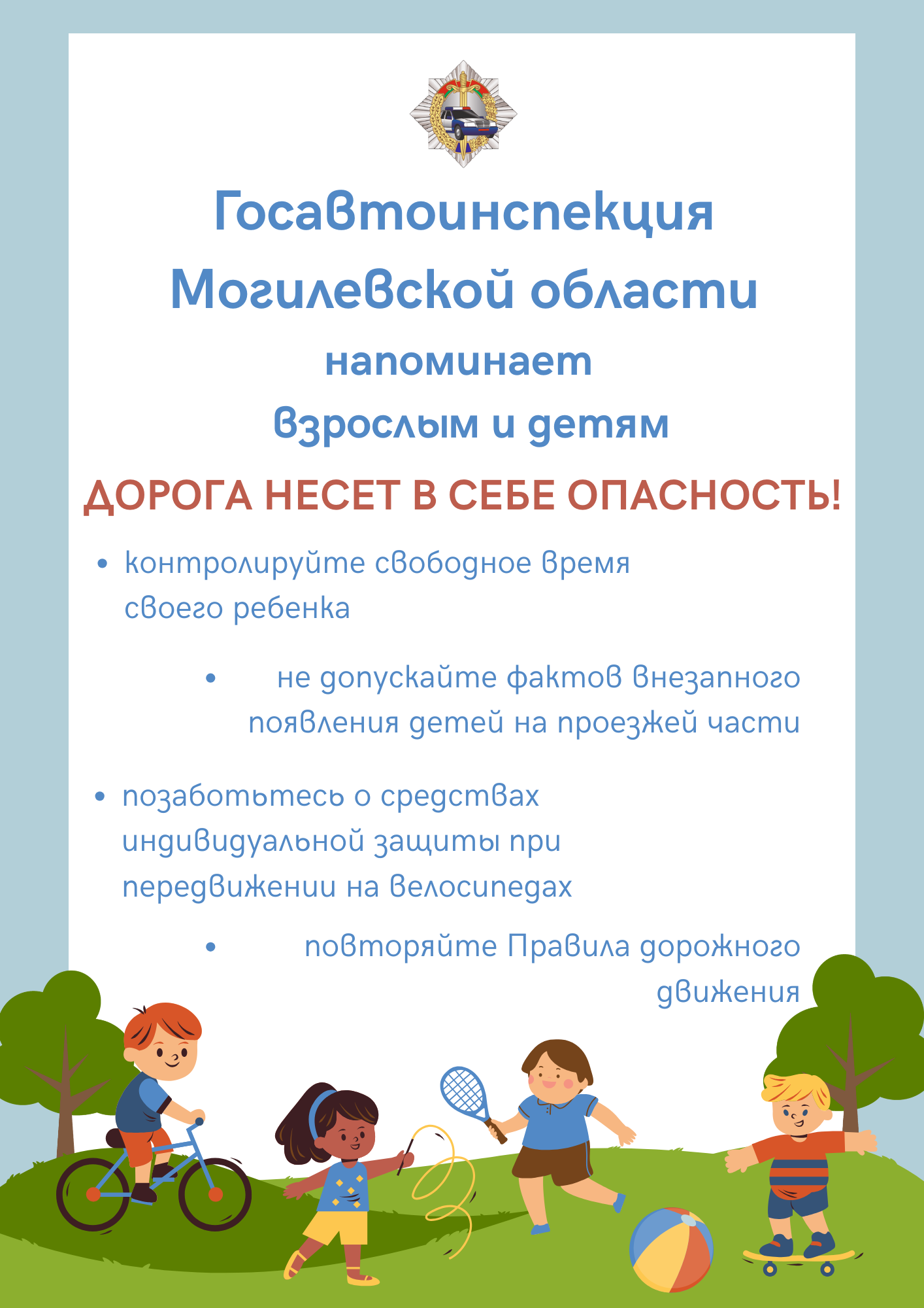 В январе-июне 2025 года на территории Могилевской области зарегистрировано 24 дорожно-транспортных происшествия с участием несовершеннолетних, в результате которых 1 ребенок погиб и 27 детей получили травмы.