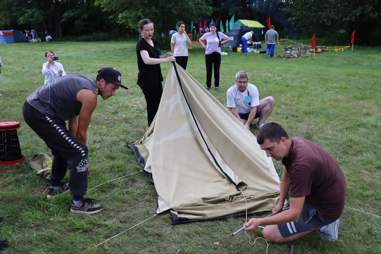 Команды обустроили свои «штаб-квартиры». Палаточные лагеря раскинулись на поляне. Каждый был оригинален и отражал дух команды, ее изобретательность, хозяйственность и, конечно же, учреждение, которое он представлял.