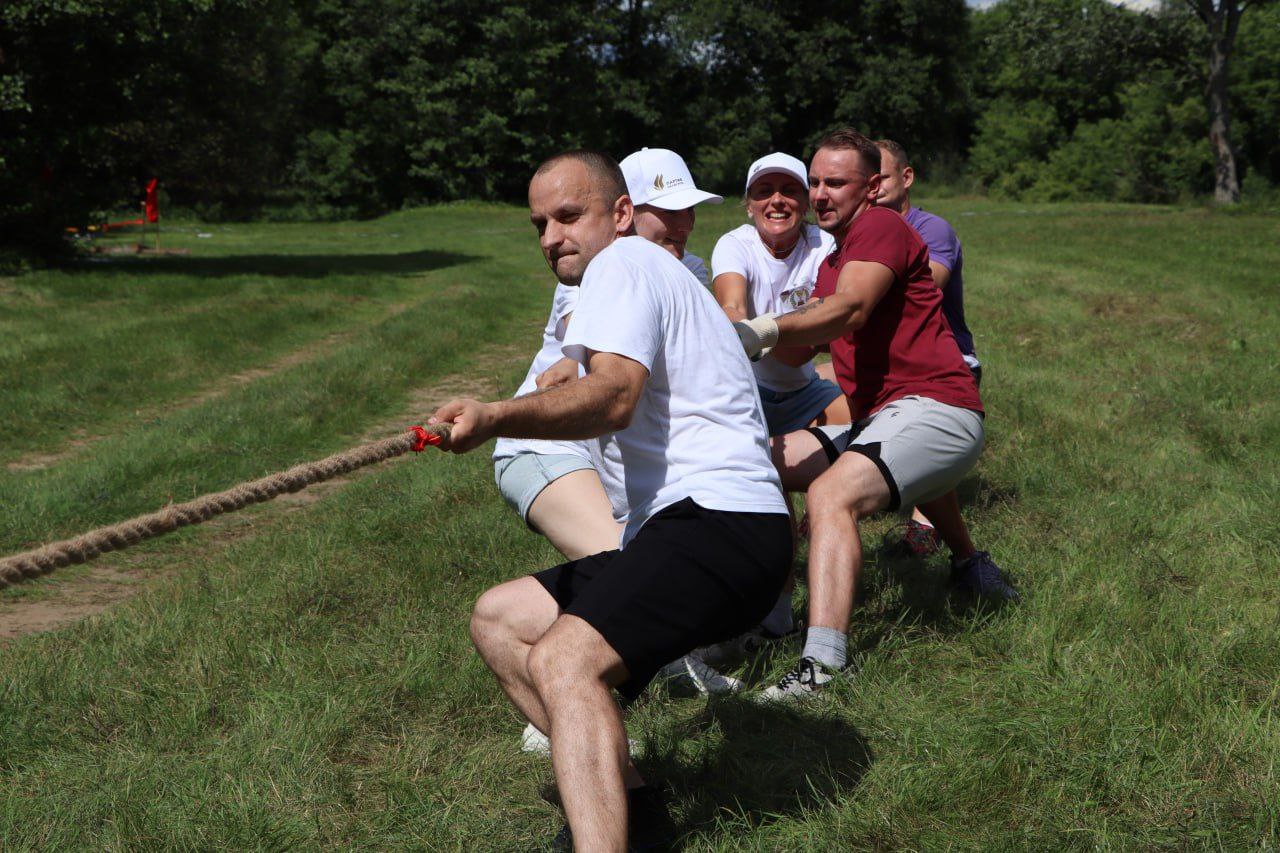 Зрелищно и эмоционально прошел конкурс, где команды мерились силой, — перетягивали канат. Спортивные страсти буквально бурили — соперники налегали на канат и не желали уступать друг другу. Мускулы напряглись, лица краснели, а земля порой даже уходила из-под ног. Соперники налегали на канат, не желая уступать ни сантиметра.