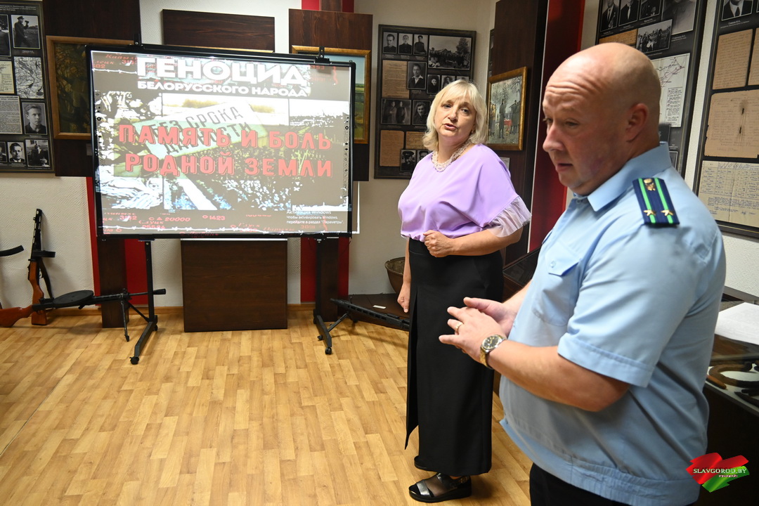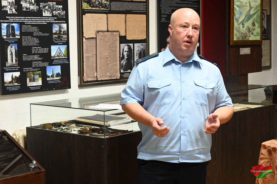 Именно с этой целью в районном историко-краеведческом музее Славгорода прошла встреча прокурора района Алексея Пуховского с молодыми специалистами УЗ «Славгородская ЦРБ». Темой разговора стала одна из самых трагических страниц в истории Беларуси — геноцид мирного населения в годы Великой Отечественной войны.