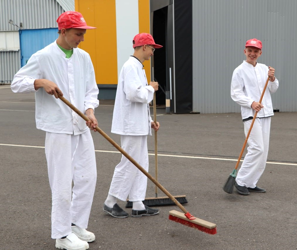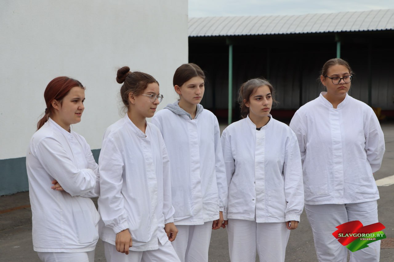 В поле зрения — сервисный отряд «Мармелад» имени Героя Советского Союза Кирилла Прокофьевича Орловского на базе ПТУП «Красный пищевик-Славгород». С 13 августа ребята, которым исполнилось 16 лет, включились в работу на предприятии города. Несмотря на юный возраст, школьники демонстрируют инициативу, дисциплину и внимание к безопасности — ключевой аспект их в работе.