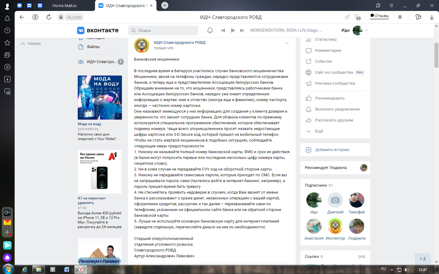Обращаем внимание на то, что мошенники, представляясь работниками банка или Ассоциации белорусских банков, нередко уже знают определенную информацию о жертве: имя и отчество (иногда еще и фамилию), номер паспорта, иногда — частично номер карточки.